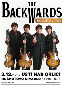 Kapela THE BACKWARDS v roce 2025 slaví 30 let na scéně! Přichází s aktuálním programem THE BEATLES ´66 TOUR, který mapuje poslední období koncertování The Beatles. Těšit se můžete na působivý výlet do hudební historie, na nové skladby v repertoáru The Backwards i novou kostýmní a světelnou výpravu. Strhující výlet do hudební minulosti plné nezapomenutelných hitů pro několik generací fanoušků Beatles čeká na všechny návštěvníky koncertů kapely The Backwards.
